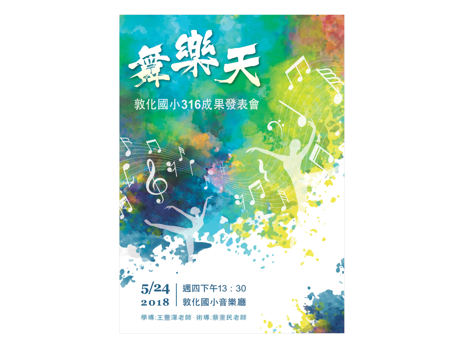 Designed promotional and event materials for Dunhua Elementary School's music class concert practice "舞樂天" (Dance with Music), creating a dynamic visual identity that celebrates the integration of music and movement.