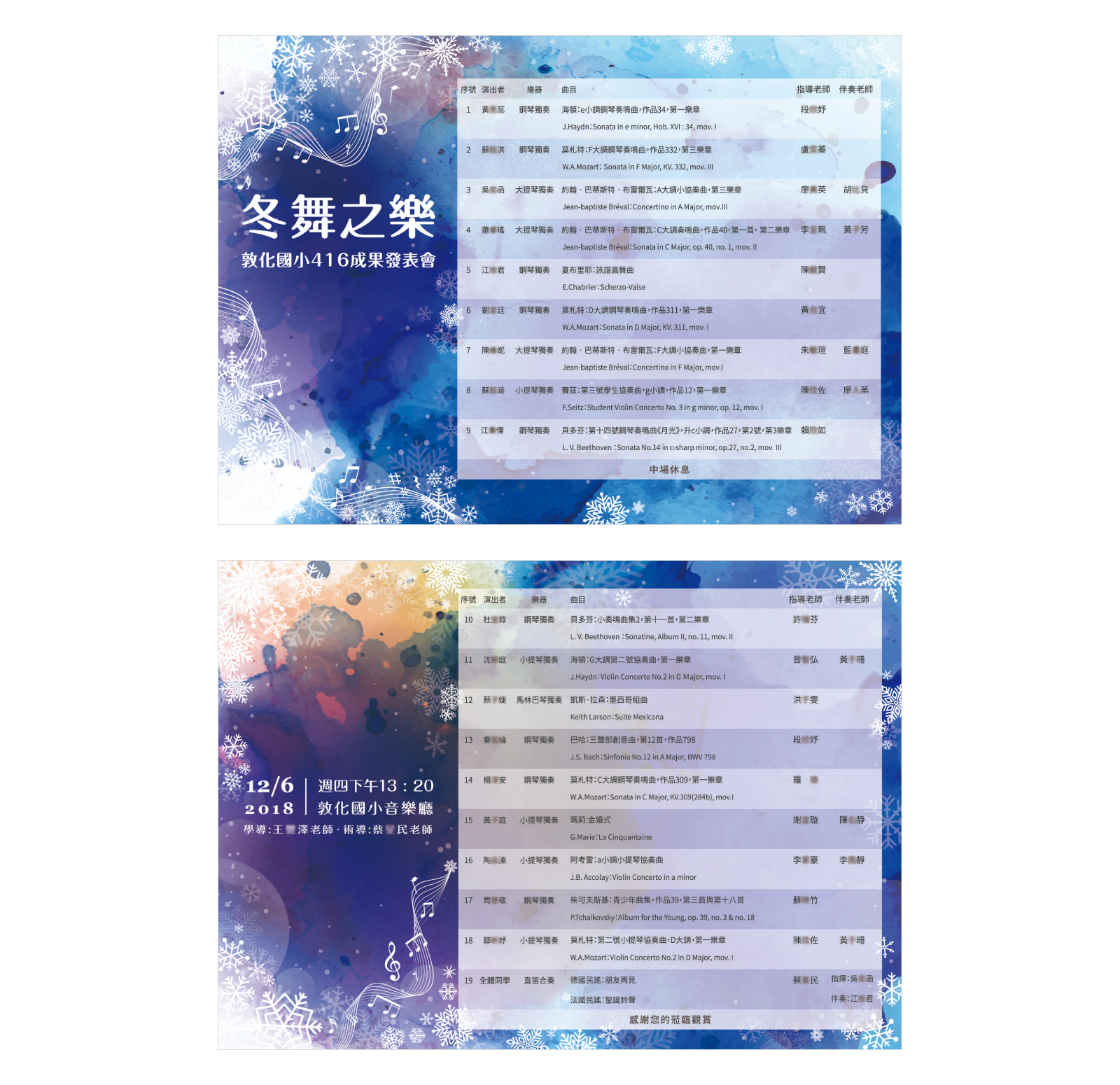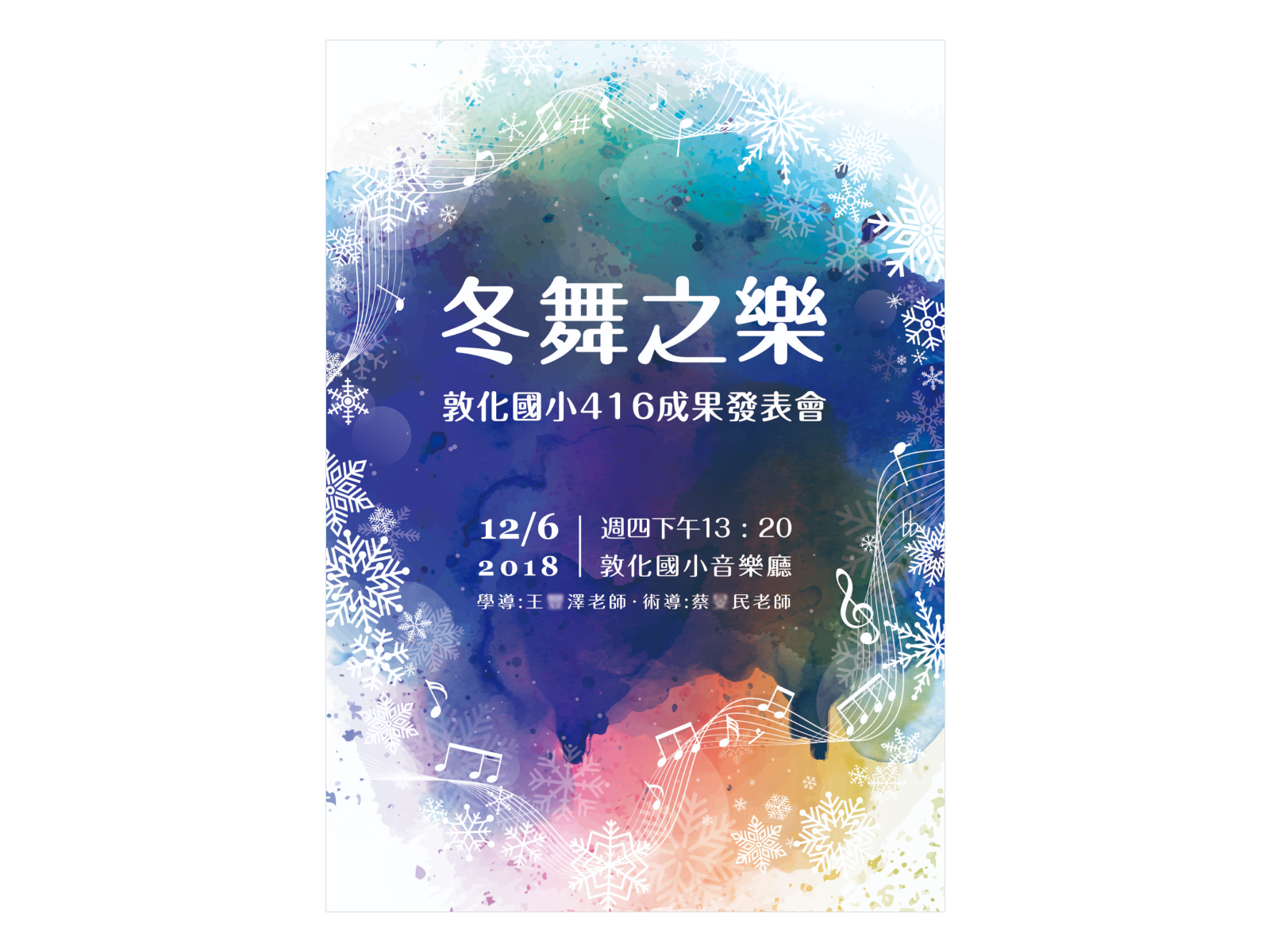 Designed visual and printed materials for the concert practice of Dunhua Elementary School's music class, titled "樂之聲". Tasks included creating posters and program schedules.